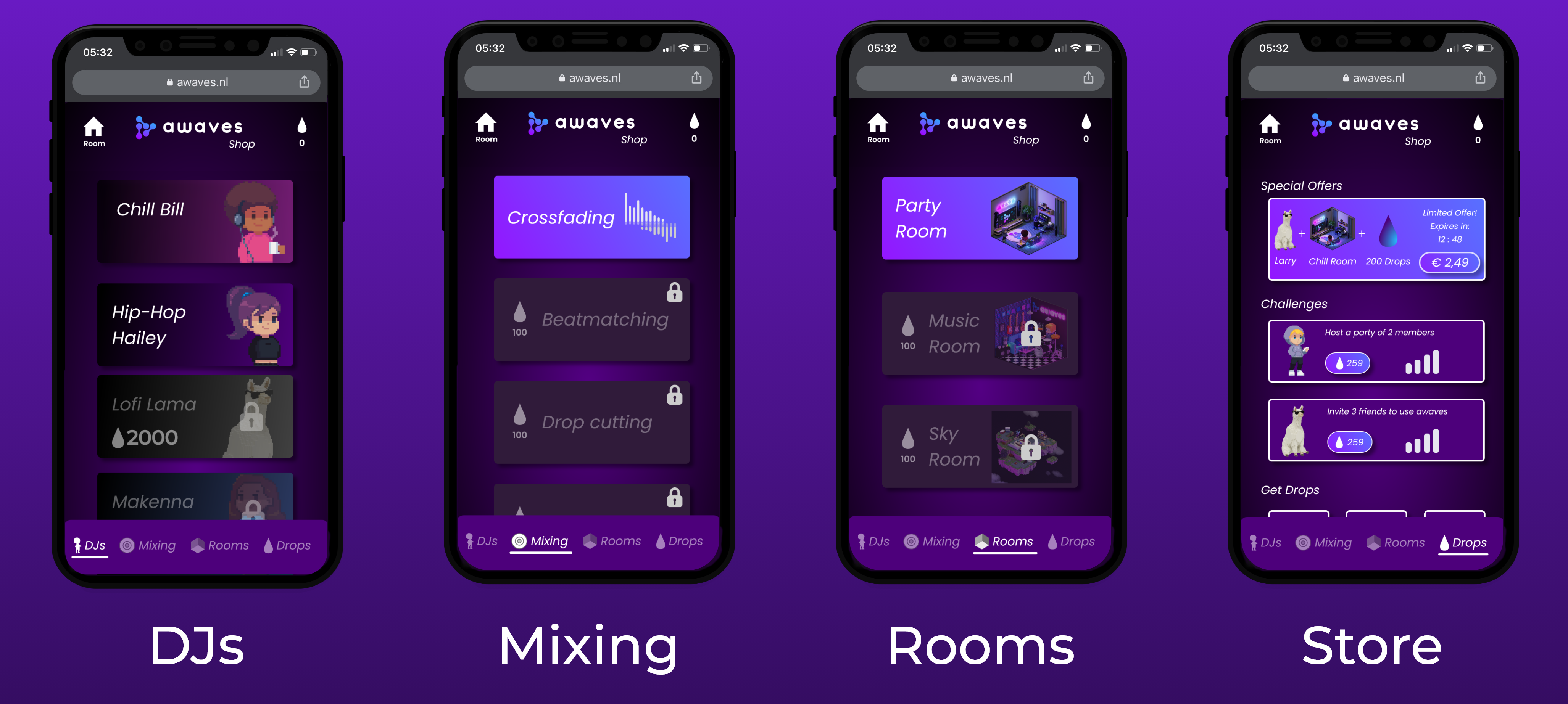 Awaves was a music tech startup founded to bring the next generation of music innovation through AI DJs. Among a few of their digital products is the main product called Awaves Play. This web-application offers several users to be grouped and listen a genre of music everyone enjoys for as long as they will. One of their future goals is to introduce an Awaves Shop for users who want more features from their services.