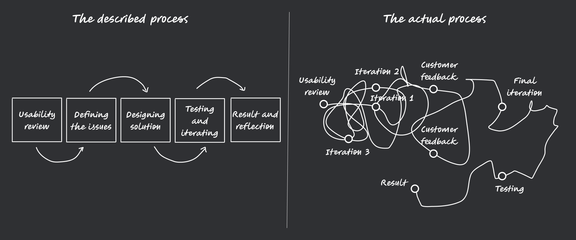 Quick sketches was used to iterate between different possible design and consider them in different contexts.