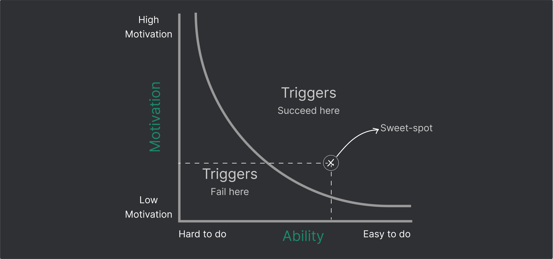 Based on a quick effort-impact assessment, we chose to explore user motivation and ability. The CEO and I believed that strong motivation could reduce the need for prompting, which narrowed our focus to two areas: reward and effort.
