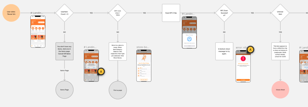 Scanning the NFC tag in-store was essential for tracking reuse. However, needing three taps each time felt excessive—especially for frequent users visiting stores multiple times a week—posing a risk to long-term engagement. The problem, then, was how to reduce the process from three taps to one, without compromising business needs.
